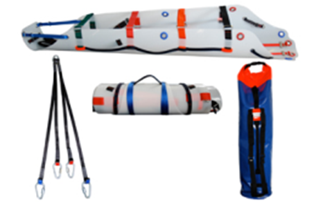 (2)使用此擔架可緊緊固定被救助者,垂直或水平吊運或在光滑的地面拖拉。 也可卷起存儲,使用簡單,儲存方便健壯,緊湊和輕量級擔架。(3)擔架下沒有固定扁帶通過,可防止拖拽造成損壞。