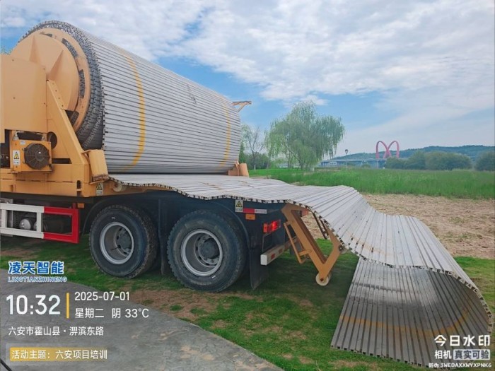 應急機動路面是一種專為臨時路面需求設計的特殊裝備,主要用于在沙灘、泥濘、雪地、沼澤等低承載能力的地段快速鋪設臨時活動路面,以保障輪式或履帶式裝備的順利通過;路面材料通常為鋁合金材料,具有輕便、快速鋪設和撤收的特點。在搶險救災任務中,應急硬質機動路面車可在低承載能力路段快速鋪設,如沙灘、泥濘、沼澤等,為重型裝備提供通過條件。在應對突發汛情、險情時,能夠迅速提供救援通道,提高應急處置能力。