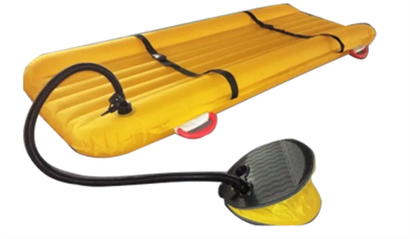 2b、充氣方式分鋼瓶充氣與腳踏泵充氣兩種:氣瓶充氣式擔架是擔架上配有300克氣瓶,拉線拉一下就會擊破氣瓶,快速充氣(氣瓶充氣式擔架也有了腳踏泵,也可以腳踏充氣);腳踏式擔架是直接腳踩泵直接充氣。