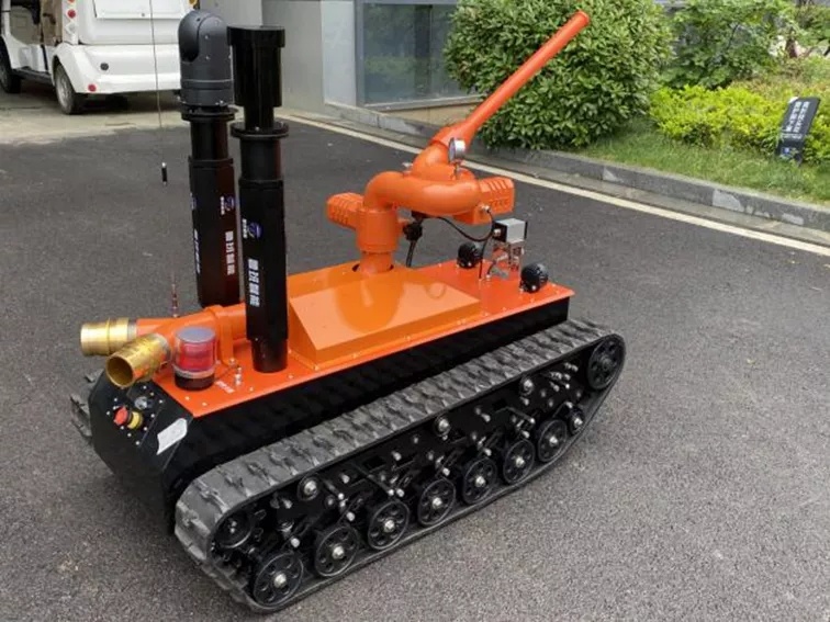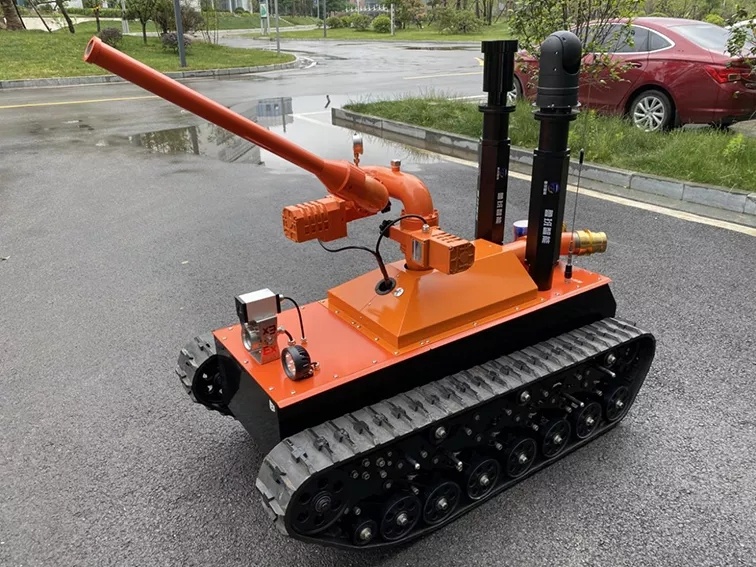 消防干粉滅火機器人作為特噴射種機器人的一種,采用鋰電池電源作為動力電源,使用無線遙控的方式遠距離操控粉劑物料機器人,能夠與粉劑物料車連接,通過噴射粉劑進行滅火等作業(yè)。可使用于各種大型石油化工企業(yè),隧道、地鐵等不斷增多,油品燃氣、毒氣泄漏爆炸、隧道、地鐵坍塌等災害隱患多發(fā)地,滅火機器人在搶險救援中發(fā)揮舉足輕重的作用,主要替代消防員在危化火場或濃煙火災現(xiàn)場救援的專用設備
