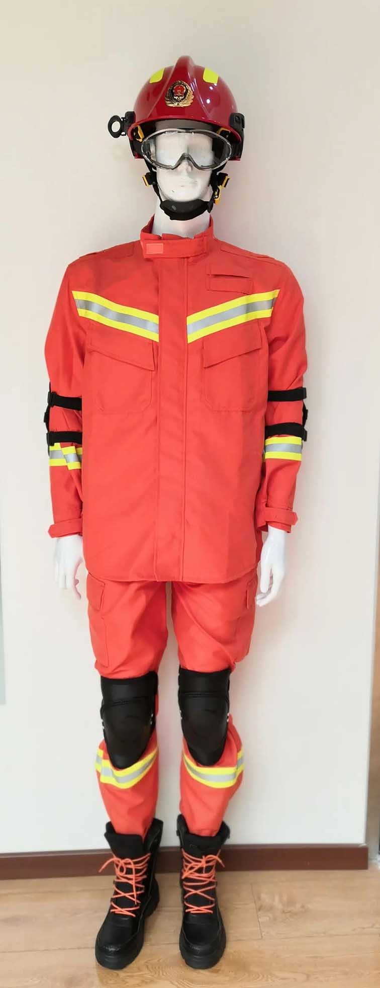 消防員搶險救援防護服用于建筑物倒塌、狹窄空間及攀登等救援現(xiàn)場的身體防護,采用國際上通用的結(jié)構(gòu)形式,使用國外引進的紡紗、織造、縫紉和檢測設(shè)備,用先進的紡織、整理工藝加工而成。