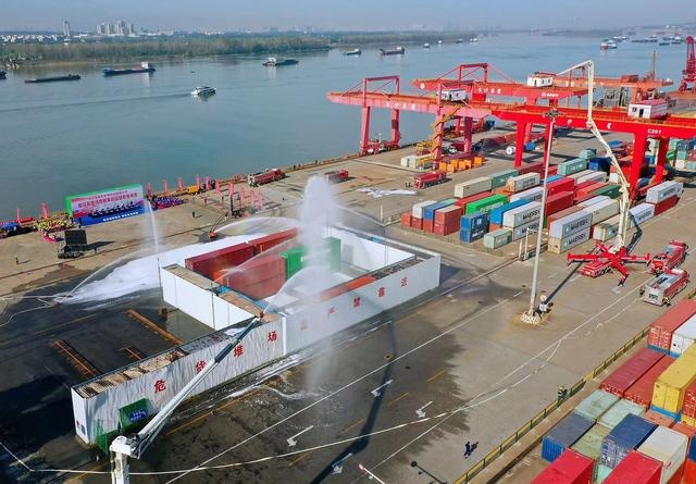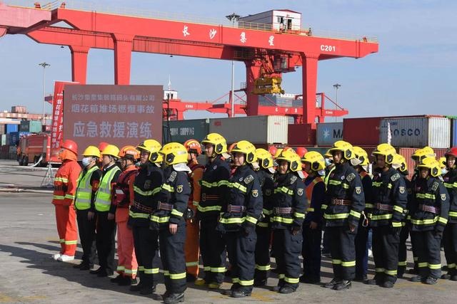 這是由省湘水集團指導,湖南省港務集團主辦的一次煙花爆竹集裝箱堆場燃爆事故應急救援演練。
