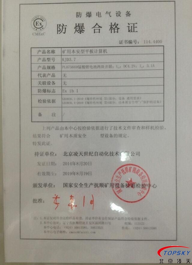 【云安通】KJD3.7防爆移動執法終端(本安平板計算機) 技術完成單位:北京凌天世紀自動化技術有限公司 |