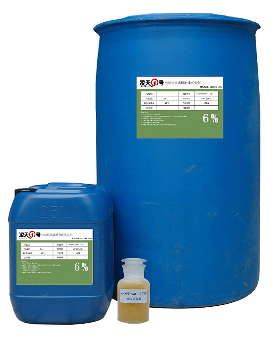 該滅火劑的各項性能指標符合GB15308-2006 《水成膜泡沫滅火劑》的要求。按與水體積混合比分為3%AFFF (3: 97)和6%AFFF(6:94)兩種。該滅火劑通過比例混合經泡沫產生裝置可以均勻細膩的泡沫。該滅火劑是目前低倍數泡沫滅火劑中滅火效率最高、滅火速度最快的一-種滅火劑,它具有多種使用形式,可以適用于各種低倍數泡沫產生系統和泡沫滅火器中使用,經國家權威部門檢測對人體無毒無刺激,腐蝕性低,該滅火劑不但徹底解決了環境污染問題而且儲存期長等特點。