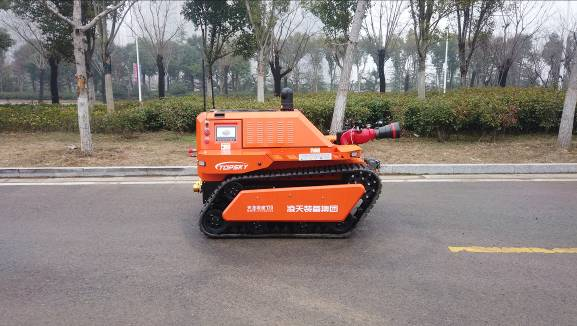 RXR-M120D是一款履帶式中型油動力消防滅火機器人,采用柴油發動機為動力,閉式液壓系統驅動ASV橡膠履帶進行高速行走,搭載了每秒120升的大流量消防炮,攜帶多種檢測、監控傳感檢測裝置,對火災場所實施遠程實時監控,進行火災撲滅。