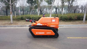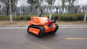 履帶式中型油動力消防滅火機器人,采用柴油發動機為動力,閉式液壓系統驅動ASV橡膠履帶進行高速行走,搭載了每秒150升的大流量消防炮,攜帶多種檢測、監控傳感檢測裝置,對火災場所實施遠程實時監控,進行火災撲滅。