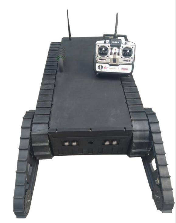 單擺臂機器人底盤車是一款通用型履帶式機器人底盤車,可滿足小型偵查類機器人越野性能及平穩性能的超高要求,方便用戶搭接設備、擴展應用,內部搭載高扭矩直流無刷減速電機,為底盤提供強勁動力,迎難而上,精準的底盤高度搭配合理功率的電機,采用前2擺臂+履帶的結構形式,履帶和擺臂適合復雜地形,可以提高越障性能,且做出快速作戰部署。