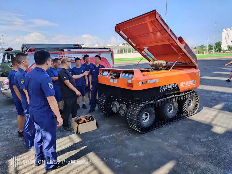 履帶式消防應急供排水機器人防汛水泵是集柴油機、動力站、液壓潛水泵、履帶機器人、遙控控制系統、液壓動力系統為一個整體、使其能運用與一些特殊的工況環境使用,例如底下車庫、依然易爆環境、無電源無動力的環境需要臨時大流量排水時用該系列履帶式消防排水機器人效果明顯。