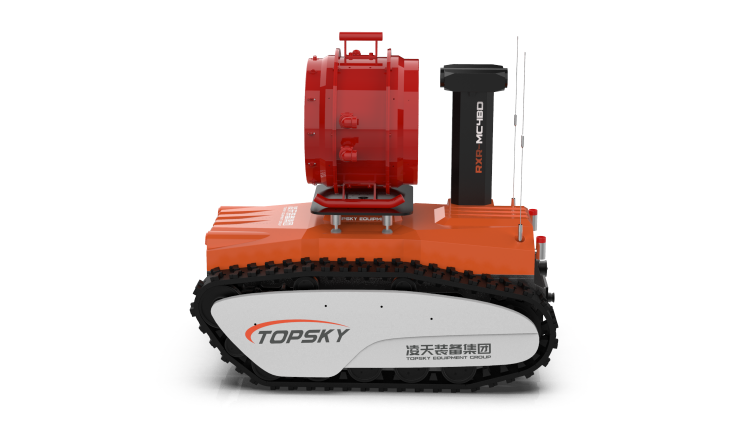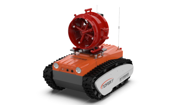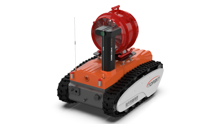 RXR-MC4BD防爆消防高倍數泡沫滅火偵察機器人作為特種機器人的一種,采用鋰電池電源作為動力電源,使用無線遙控的方式遠距離操控消防滅火機器人。本產品可適用于各種大型危險化學品、大跨度商業建筑、工廠、商貿企業、礦山、隧道、地鐵、倉庫、飛機庫、船舶等事故救援,該產品發泡量大,用壓力泡沫混合液驅動水輪帶動風扇旋轉,經過噴頭把泡沫混合液以霧狀形式噴向發泡網,在發泡網的內表面行程一層薄膜,借助風輪產生的風力生成高倍數氣泡,迅速淹沒或覆蓋燃燒物體表面,達到滅火的目的。主要替代消防員在石化、燃氣儲罐等場所流淌型火區的覆蓋型滅火作業。