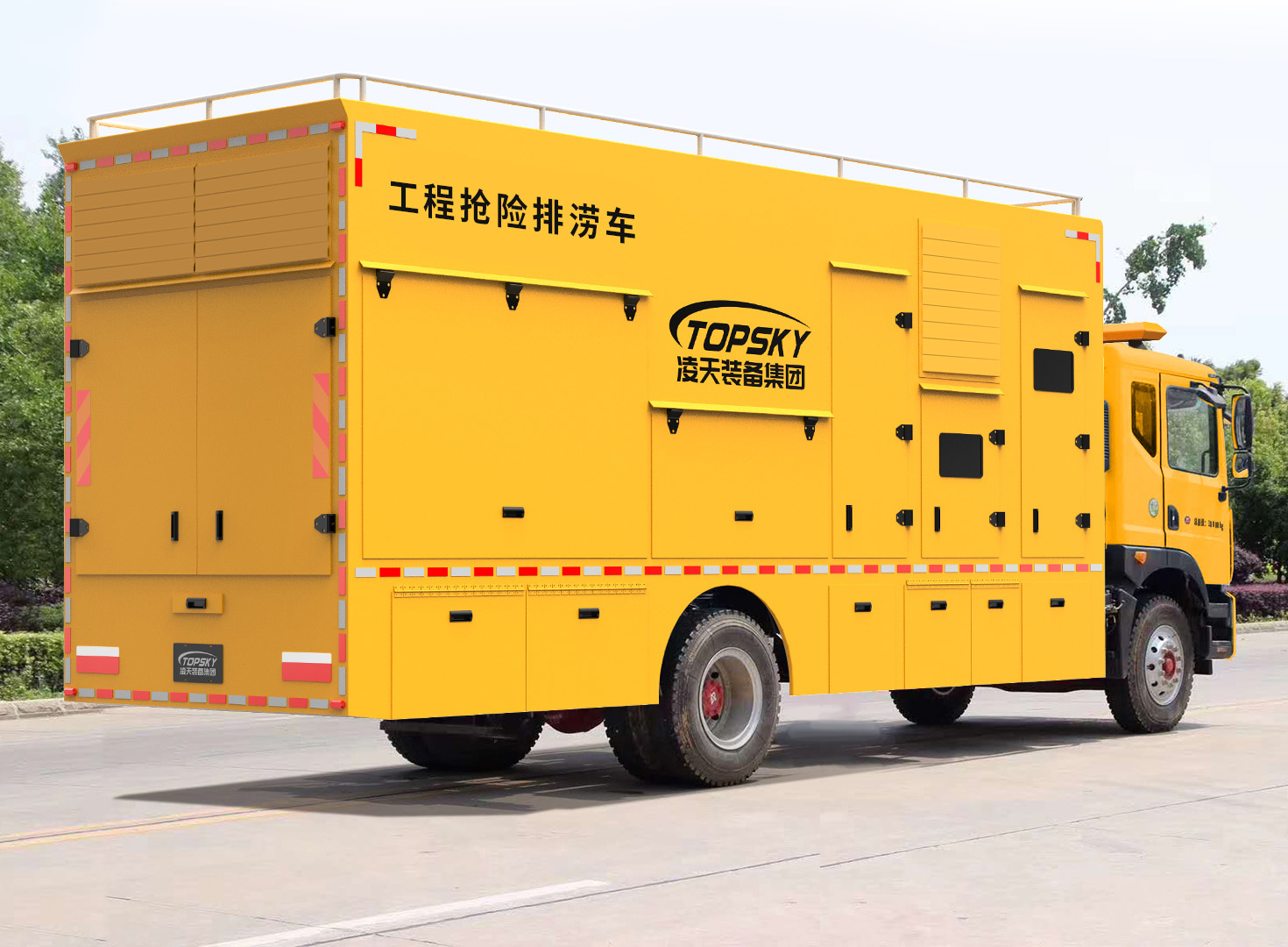 3.整車布局合理分電源動力區(qū)、指揮休息區(qū)、設(shè)備操作區(qū),整車不超重、排水流量大;