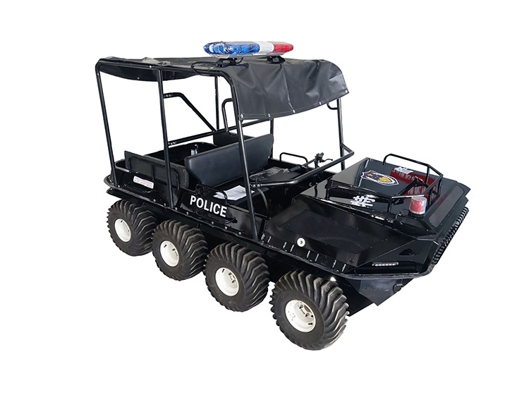 在復雜惡劣的地形條件和自然環境下,水陸兩棲全地形車可以讓搜救隊員和攜帶的救援裝備快速到達救援現場,減少徒步帶來提供消耗,完成最后一公里最好五分鐘緊急救援任務。水陸兩棲全地形車可配備點到絞盤、救援擔架組件、探照燈、警示燈、警報器、脫鉤、破拆工具等裝備, 給救援團隊提供救援保障,更安全的解救傷員和疏散群眾。