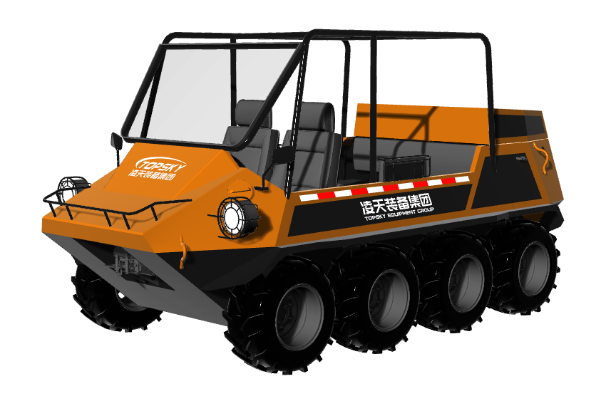 以完成可靠的野外應急救援為目的,該水陸兩棲全地形車可提供一種安全的運輸方式和可靠的運載平臺,產品可以在山地環境、濕地環境、沼澤環境、水面環境、叢林環境等多種工作環境下,實現全天候連續作業。并且可以在災害現場巡邏勘察、運送受傷人員、并有效實施援救。