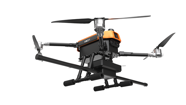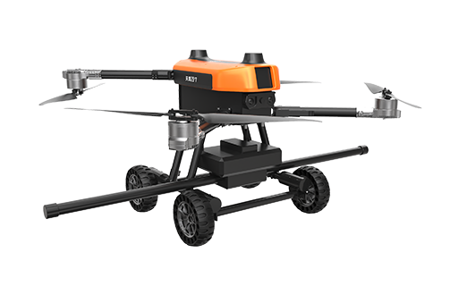 本無人機(jī)為北京凌天智能裝備集團(tuán)研發(fā)的陸空兩棲航磁探測(cè)無人機(jī),采用四旋翼機(jī)身設(shè)計(jì),載重大,續(xù)航長,并且機(jī)體折疊標(biāo)準(zhǔn)化負(fù)載接口。同時(shí),該無人機(jī)具備陸空兩棲功能,可以在地面行駛,行走系統(tǒng)可快拆。