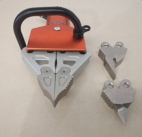 7.標(biāo)配開門開縫、撕裂兩套多功能工具頭,可根據(jù)實際救援情況隨意更換。開縫最小插入間隙為2mm,撕裂工具頭可手動戳穿3mm的Q235A金屬板。