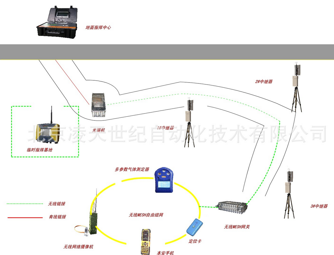我公司與美國WIR-COMMU 公司合作研發(fā)的ZWZ4礦用救災無線視頻通訊裝置是專門用于事故現(xiàn)場的新一代無線救災通訊系統(tǒng),是目前救援通信領域的新產(chǎn)品;它能夠同時將現(xiàn)場的圖象、聲音以無線或有線方式傳到基地,進而通過光纜將全部信號傳到地面指揮系統(tǒng),解決了目前救援指揮工作的可視化要求,它便攜式的配置、更大的信號傳輸功能,能適應于井下各種復雜的情況,具有極強的救災能力,能夠很好的滿足井下各種場合和生產(chǎn)單位對移動通信的要求。