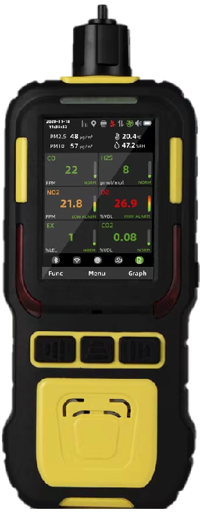 無線復(fù)合氣體探測儀(以下簡稱探測儀)支持二十多種智能氣體傳感器,可同時(shí)連續(xù)檢測5種氣體的濃度(氣體種類可自由組合系統(tǒng)智能識(shí)別)、粉塵濃度(PM2.5、PM10)、核輻射、溫濕度。將采集到的氣體數(shù)據(jù)、GPS位置、粉塵濃度、核輻射、溫濕度等數(shù)據(jù)通過4G上傳至監(jiān)管后臺(tái)實(shí)現(xiàn)無線管理;探測儀也可以實(shí)現(xiàn)現(xiàn)場實(shí)時(shí)數(shù)據(jù)一鍵打印功能。探測儀具有氣體濃度調(diào)校標(biāo)定、濃度值超限報(bào)警功能、STEL超限報(bào)警和TWA超限報(bào)警,一旦設(shè)備采集數(shù)據(jù)濃度值超限,設(shè)備立即開啟聲光振動(dòng)報(bào)警進(jìn)行警示,并將此時(shí)數(shù)據(jù)同步上傳至平臺(tái)??蓪⒍嗯_(tái)探測儀的監(jiān)測、監(jiān)控信息上傳,并建立特殊作業(yè)場所多功能監(jiān)測監(jiān)控系統(tǒng)平臺(tái),保障作業(yè)人員的安全。采用新一代主流外觀設(shè)計(jì),美觀耐用。