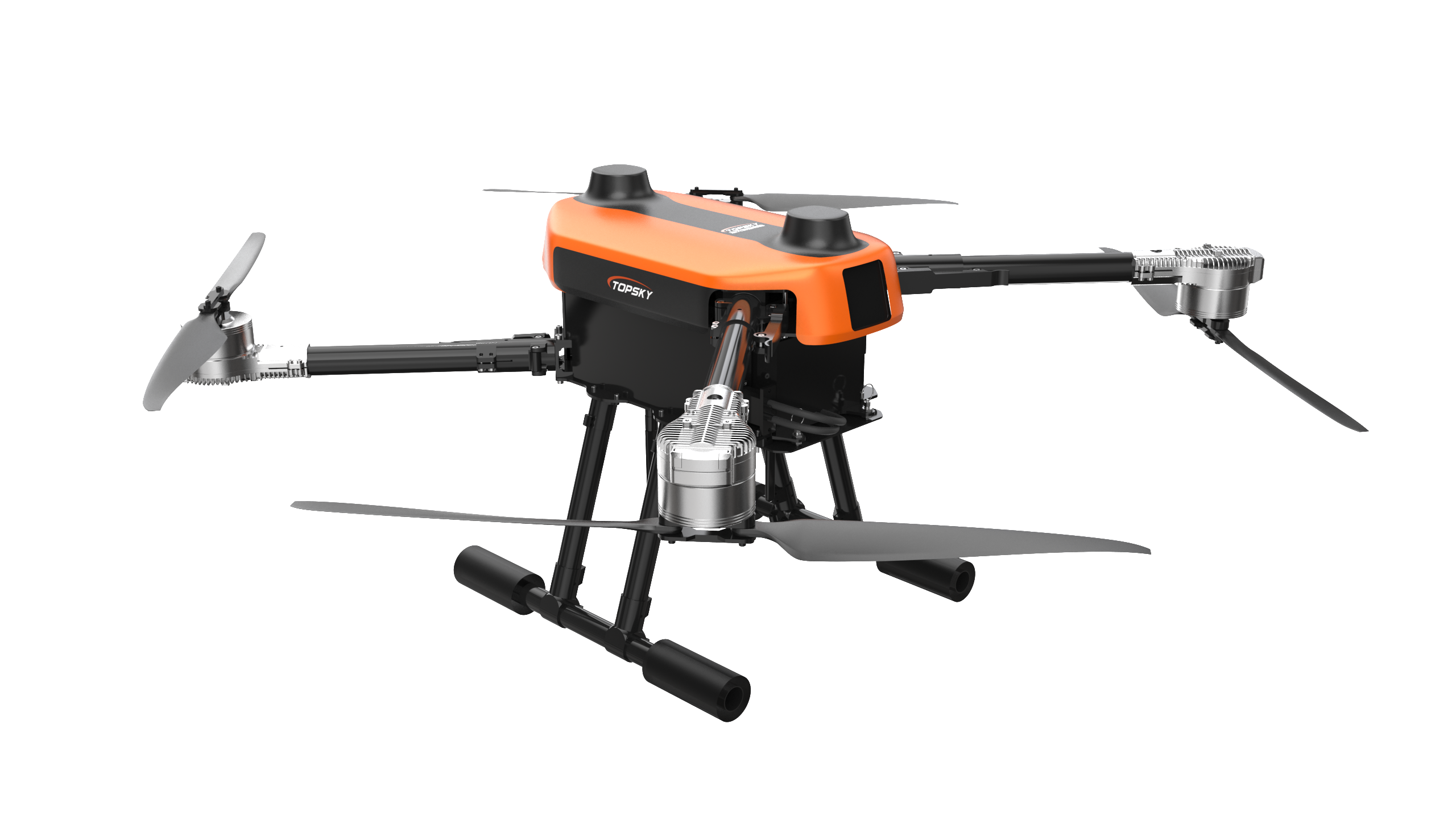 消防無人機主體為碳纖維材質,機臂可快速折疊,整機重量輕便、體積小巧,方便攜帶和快速展開。機身下方有通用載荷接口,可快速換裝不同任務載荷,通用載荷接口最大可負載5kg任務載荷,載重能力優秀。整機空載續航大于45min,超長航時可滿足大部分應用場。消防無人機配置有RTK和毫米波雷達,可實現厘米級定位精度和避障能力。