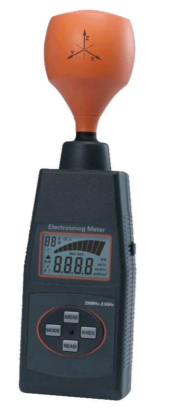 本表系寬頻帶設計可檢測50MHz至3.5GHz范圍的高頻輻射,具有全向性電場測試及高度靈敏,可使用于測量電磁場室(TEM cells)及電磁波暗室(Absorber rooms)的電場及磁場強度。