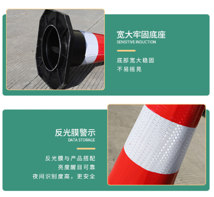 2、具有防日曬、不怕風吹雨打、耐熱、耐寒、不龜裂、不變色等優點3、白紅相間顏色醒目,晚上能反射出耀眼的光芒使駕駛者一目了然。